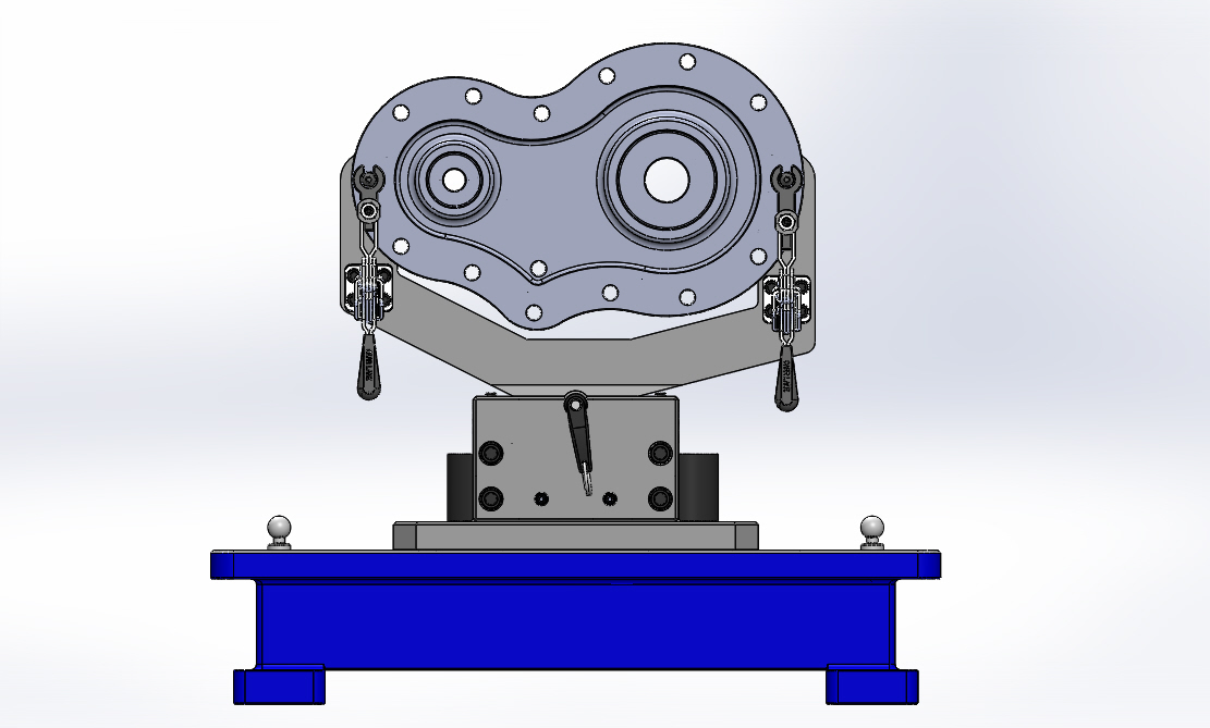 - Support features (bushings, brackets, support pads) were placed so the workpiece rests on designed support points rather than clamps alone — this keeps the part stable during probing and reduces clamp-induced deflection.